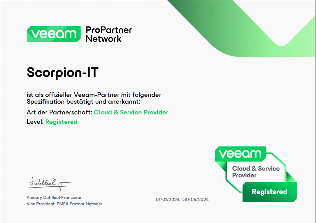 Veeam Software ist ein globales Unternehmen, das sich auf Lösungen für Backup, Wiederherstellung und Datenmanagement spezialisiert hat. Das 2006 gegründete Unternehmen hat sich schnell als führender Anbieter in der Datensicherungs- und Wiederherstellungsbranche etabliert. Veeam bietet eine breite Palette von Produkten und Dienstleistungen an, die sich an die Bedürfnisse von Unternehmen jeder Größe anpassen lassen, um ihre Daten in einer Vielzahl von Umgebungen zu schützen, zu verwalten und wiederherzustellen